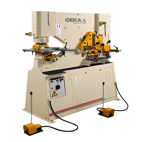 Пресс-ножницы серии Hydracrop позволяют двум операторам работать одновременно на 5 рабочих станциях: пробивки отверстий, вырубки пазов, резки уголков, резки полосового проката и резки прутков.