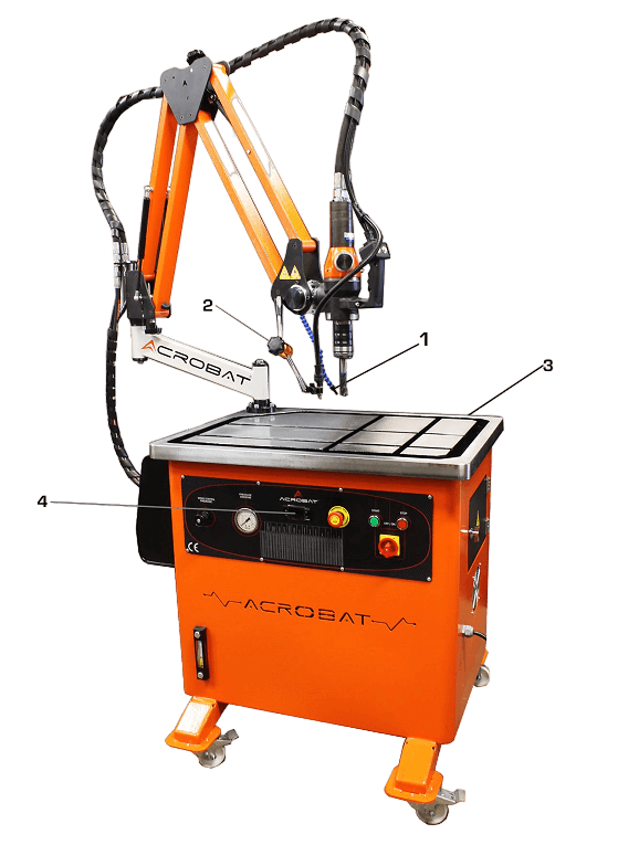 Станок для нарезания резьбы Huk 2000 Rh —модель с возможностью нарезания резьбы от M5 до M24, система редуктора позволяет показывать высокую скорость обработки и крутящего момента. Обработка малых отверстий производится на скорости 0-600 об/мин на первом этапе, обработка диаметров от М16 до М24 на скорости 0-150 об/мин при высоком крутящем моменте. Благодаря конструкции манипулятора, возможна зона обработки в радиусе до 2500 мм. Также есть возможность вертикальной и горизонтальной обработки.